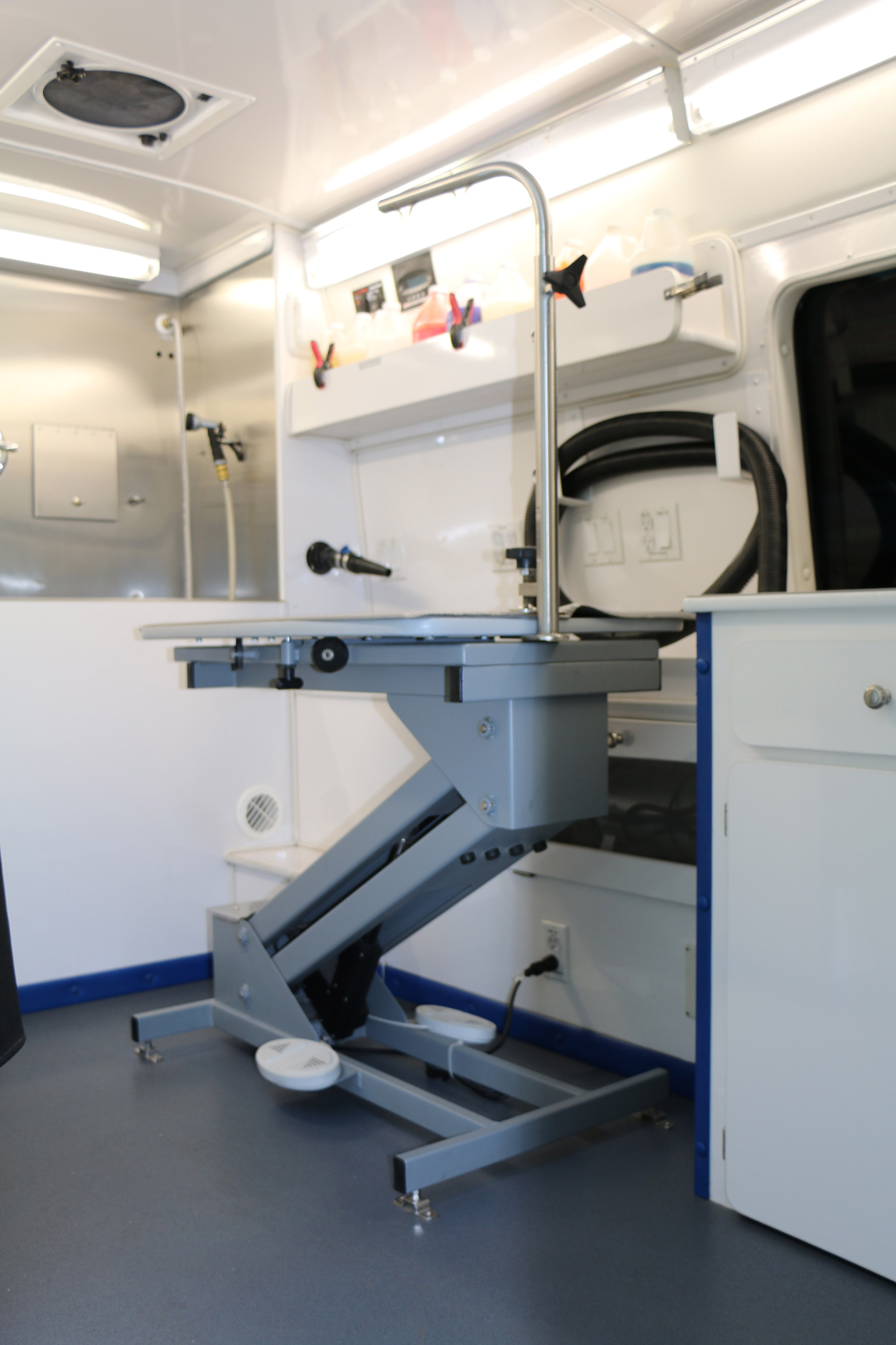 Vip Mobile Dog Grooming VIP Mobile Dog Grooming’s Vans are the most advanced in the industry. With features that include the following: 100% Cage FREE environment. Self-operated generator to power the van without needing to plug into your power source. Electrical table to adjust to your pet’s size and accessible for senior or special needs pets. A built in high powered vacuum system to safely and efficiently sanitize after every pet. A Super Sudser bathing system to efficiently bathe your pet. High powered dryers to efficiently manually dry your pet without having to place them inside a cage dryer. Temperature controlled environment to provide your pet with the most optimal comfort while being groomed.